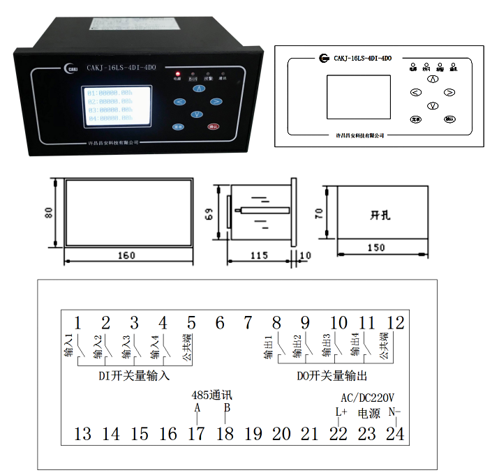 CAKJ-16LS-4DI/4DO多路時間累加報警控制器,檢測4路開入量分別啟動計時及時間累加,預(yù)先設(shè)置每一路計時報警時間,當每一路累加時間達到設(shè)定值時輸出開關(guān)量報警接點信號。控制器將4路計時時間累加顯示在液晶顯示屏上,每0.01h存儲1次,掉電數(shù)據(jù)不消失。