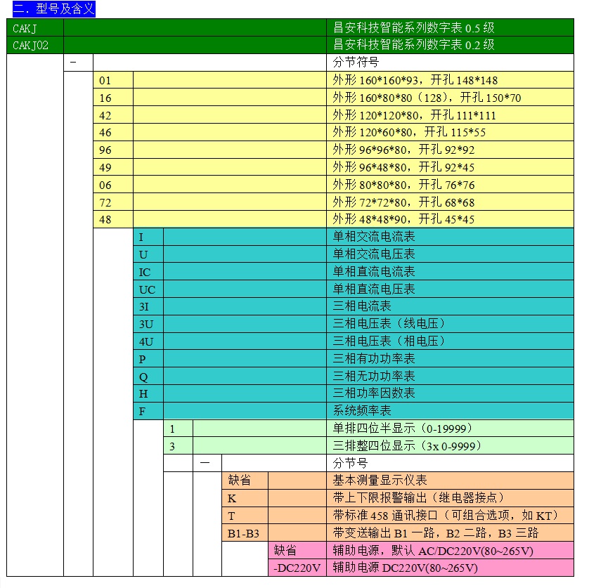 CAKJ系列單相、三相數(shù)字表適用于發(fā)電廠、變電站用控保屏、高低壓開關(guān)柜及各種測試設(shè)備、各種電氣控制設(shè)備等作為各種電氣參數(shù)。
