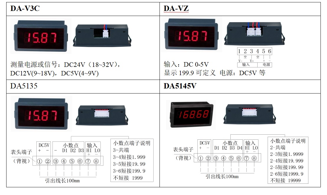 DA系列數(shù)字表頭適用于各種測試設(shè)備、各種電氣控制設(shè)備等作為各種電氣參數(shù)的精確測量、數(shù)字直觀顯示的測量設(shè)備。