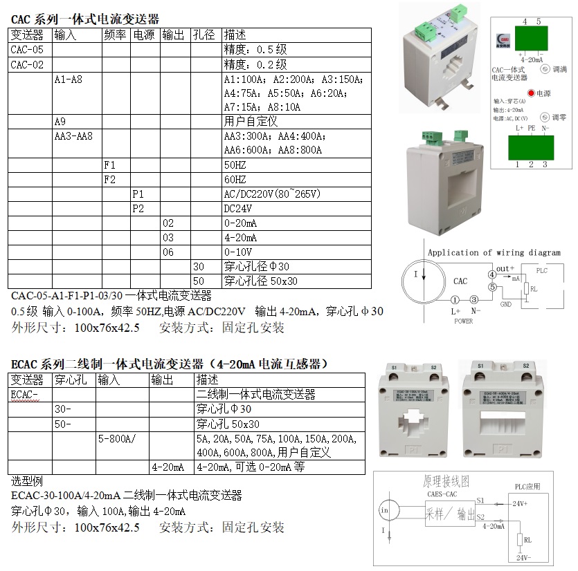 規(guī)范:0-200A/4-20mA,電源AC/DC220V