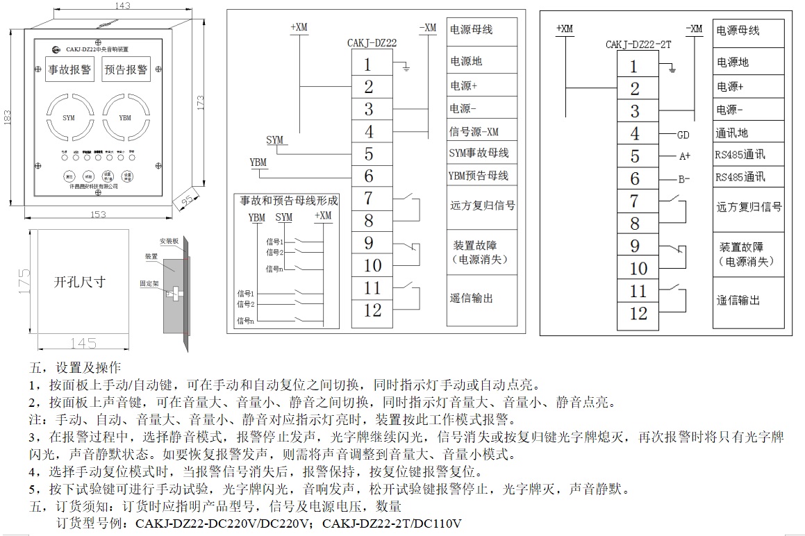 CAKJ-DZ22中央音響裝置,是為電力系統(tǒng)中央信號(hào)聲光報(bào)警而設(shè)計(jì)的一款低功耗、無(wú)干擾、大音量電子式報(bào)警設(shè)備(音量可調(diào)節(jié),可靜音)。采用單片機(jī)模擬電磁式電鈴電笛聲音頻譜,其發(fā)聲與電磁式電鈴電笛發(fā)聲相似度達(dá)98%。且具備報(bào)警信號(hào)保持(自動(dòng)及手動(dòng)復(fù)位)及遠(yuǎn)程復(fù)歸功能。